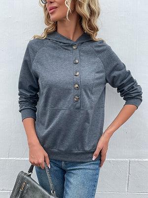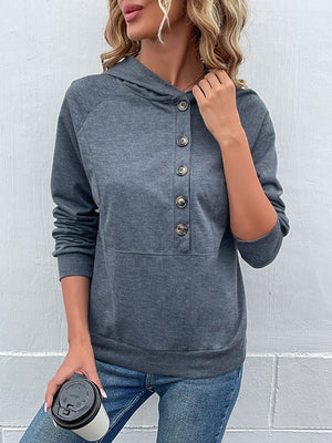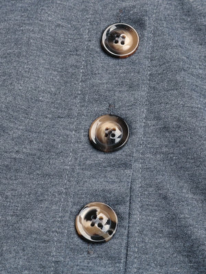 Dark Grey V-Neck Solid Long Sleeves Polyester Top