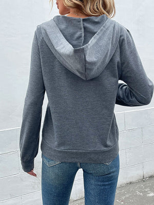 Dark Grey V-Neck Solid Long Sleeves Polyester Top