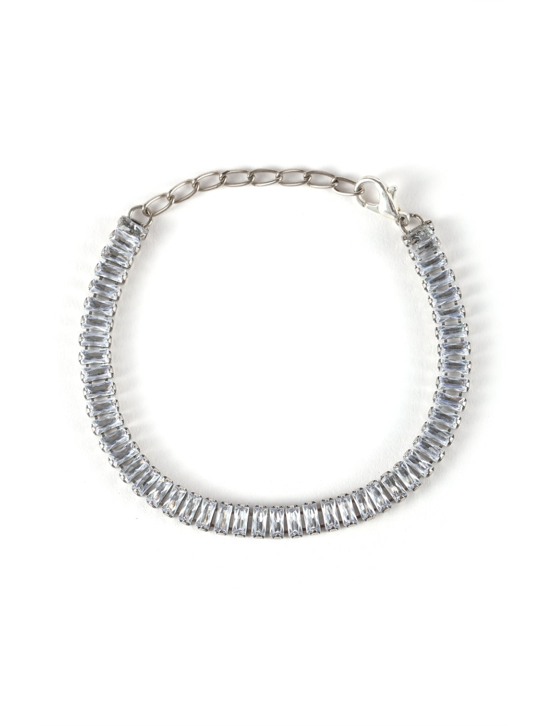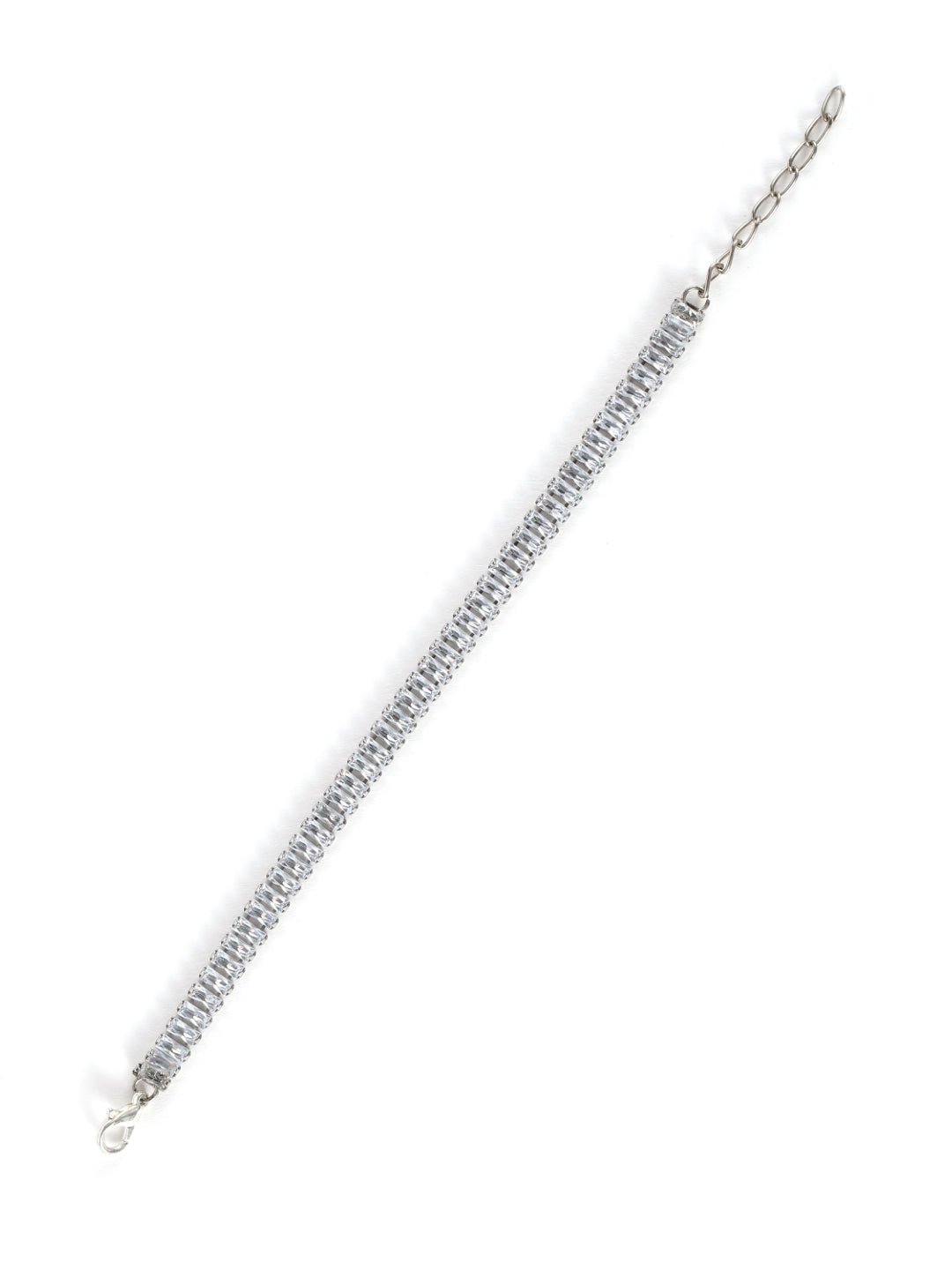 Silver-Plated Silver & Transparent Rhinestone Studded Handcrafted Brass Bracelet