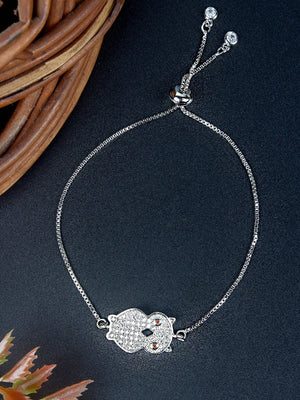 Silver-Plated Transparent & Red CZ Studded Bracelet