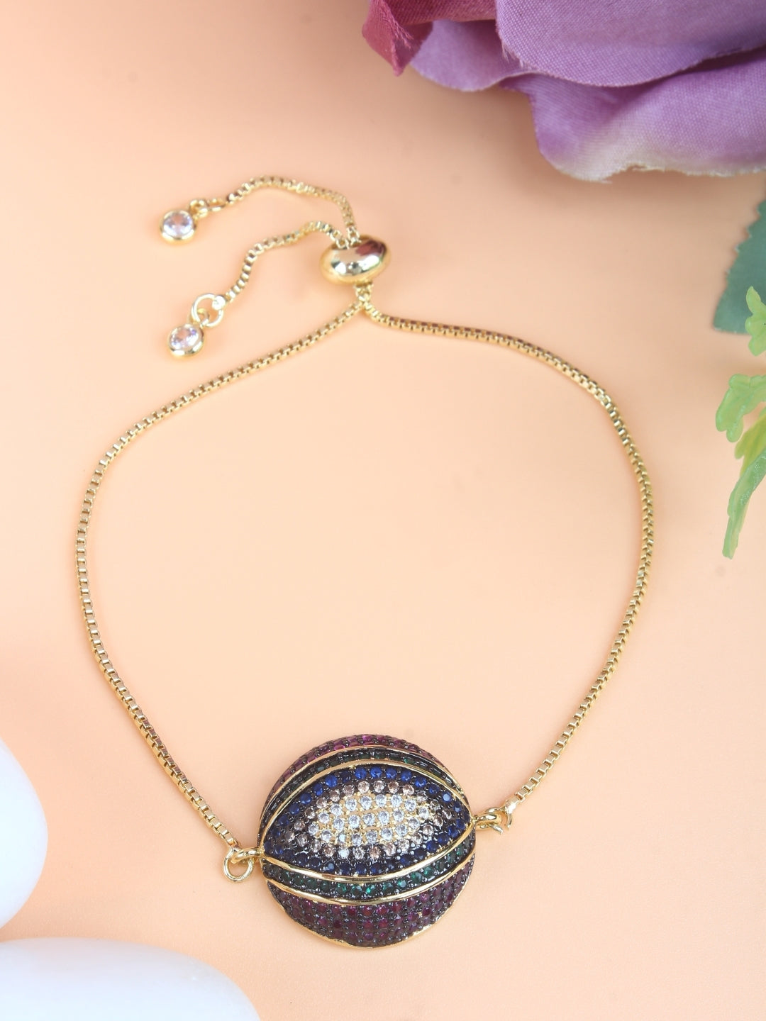 Silver-Plated Silver & Multi Cubic Zirconia Studded Brass Charm Bracelet