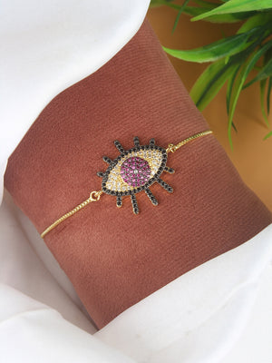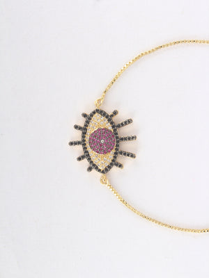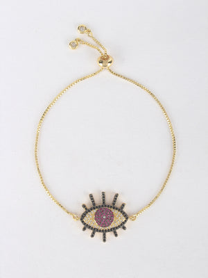 Gold & Black Brass Cubic Zirconia Gold-Plated Handcrafted Charm Bracelet