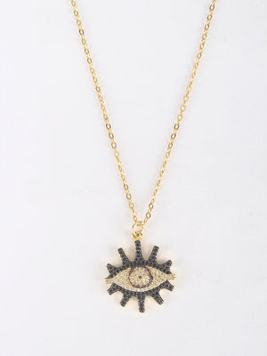 Gold & Black Brass Cubic Zirconia Minimal Gold-Plated Handcrafted Necklace