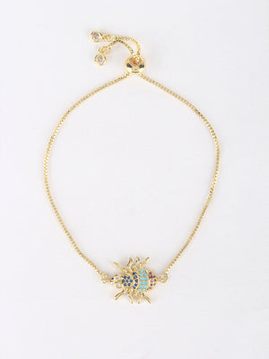 Gold & Blue Brass Cubic Zirconia Gold-Plated Handcrafted Charm Bracelet