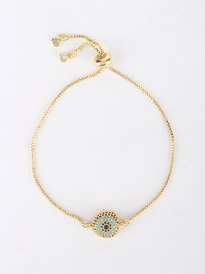 Gold & Blue Brass Cubic Zirconia Gold-Plated Handcrafted Charm Bracelet