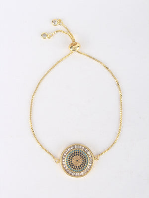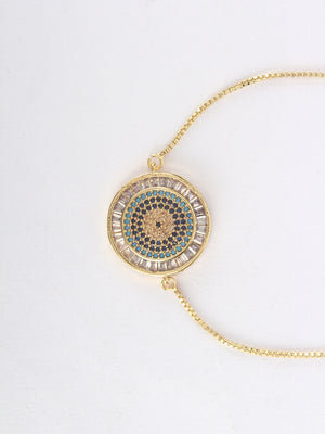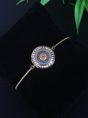 Gold & Blue Brass Cubic Zirconia Gold-Plated Handcrafted Charm Bracelet