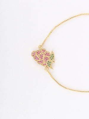 Gold & Green Brass Cubic Zirconia Gold-Plated Handcrafted Charm Bracelet