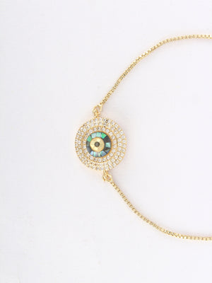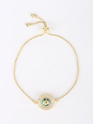 Gold & Green Brass Cubic Zirconia Gold-Plated Handcrafted Charm Bracelet