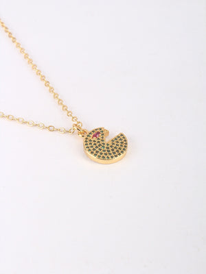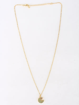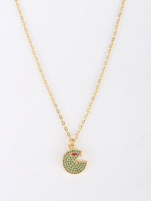Gold & Green Brass Cubic Zirconia Minimal Gold-Plated Handcrafted Necklace