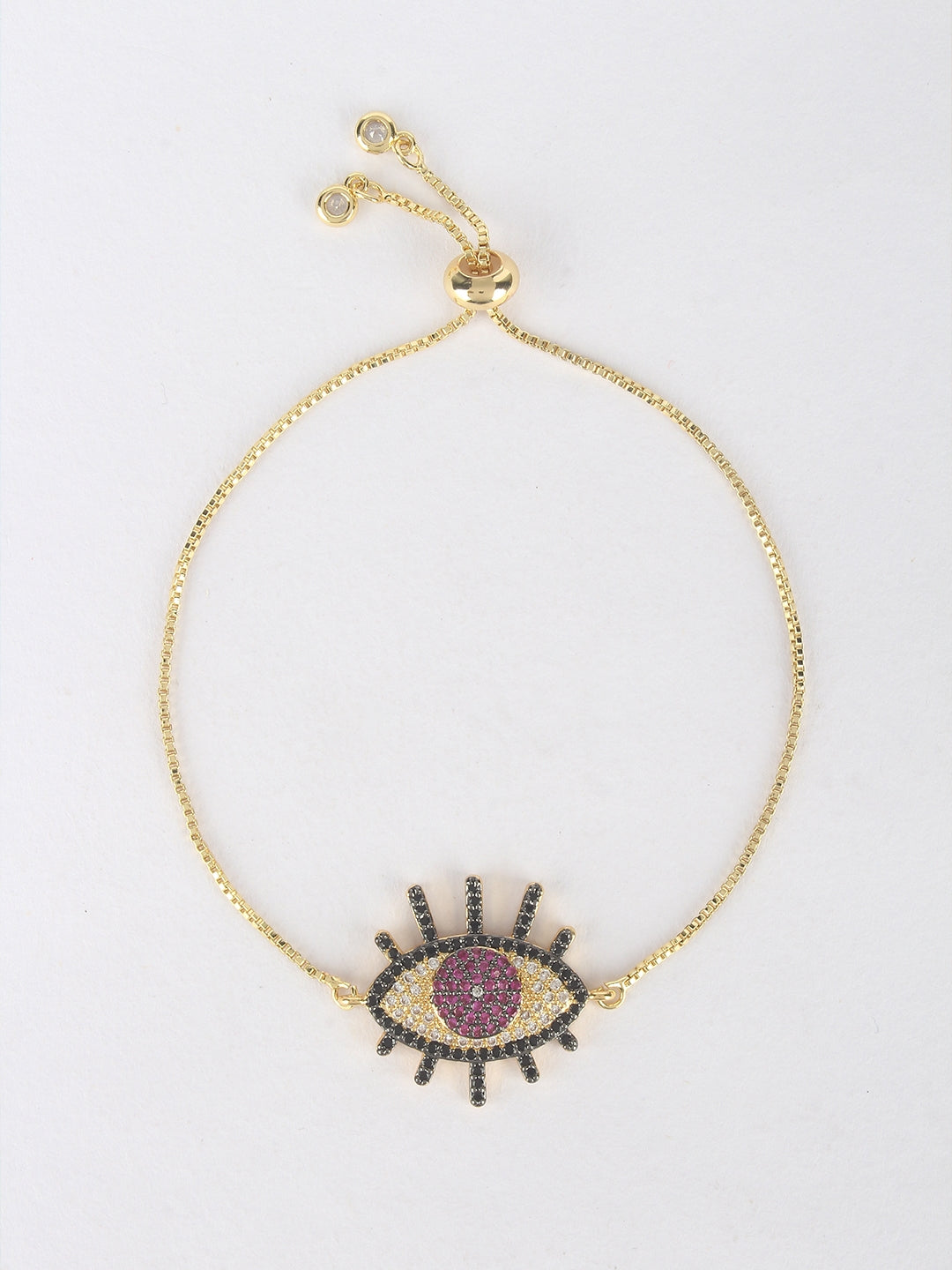 Gold & Black Brass Cubic Zirconia Gold-Plated Handcrafted Charm Bracelet