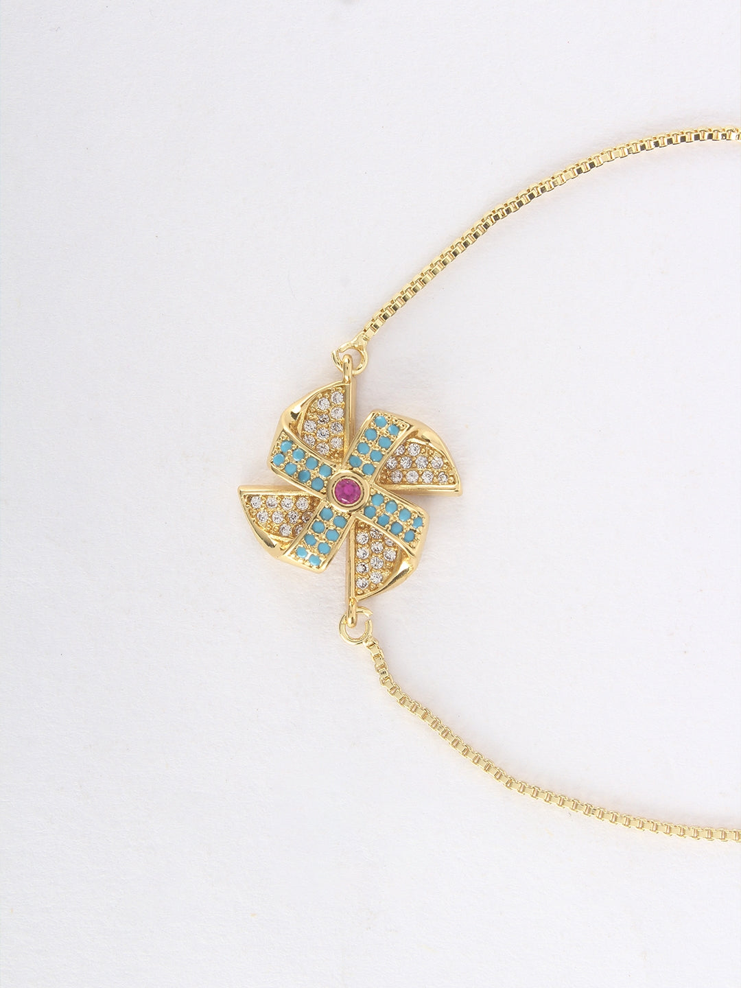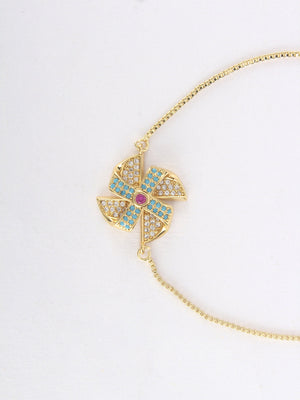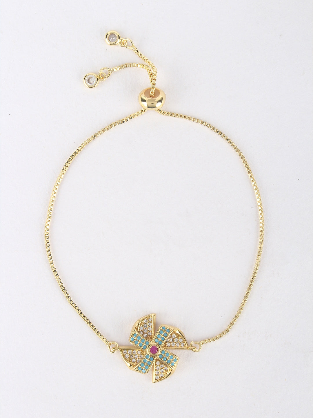 Gold & Blue Brass Cubic Zirconia Gold-Plated Handcrafted Charm Bracelet