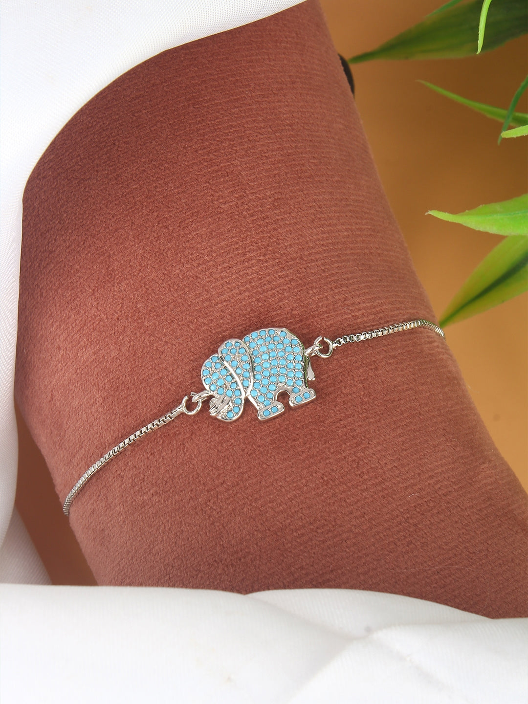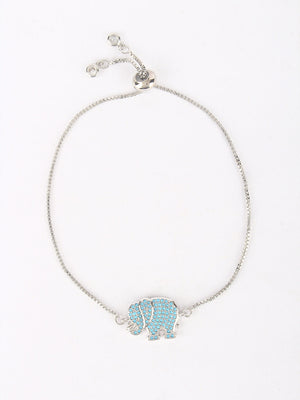Gold & Blue Brass Cubic Zirconia Gold-Plated Handcrafted Charm Bracelet