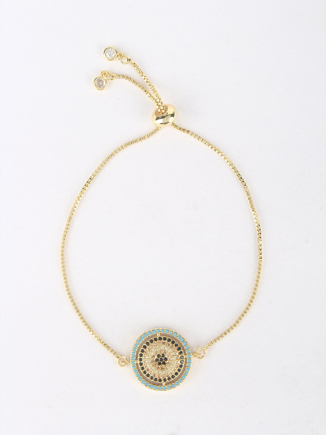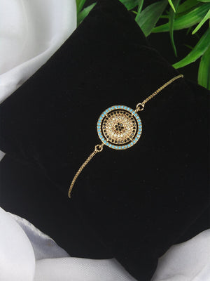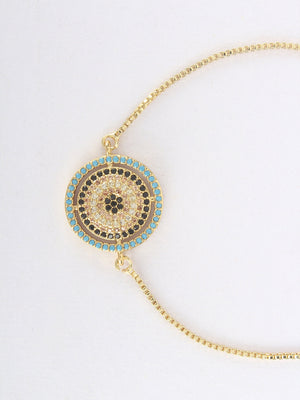 Gold & Blue Brass Cubic Zirconia Gold-Plated Handcrafted Charm Bracelet