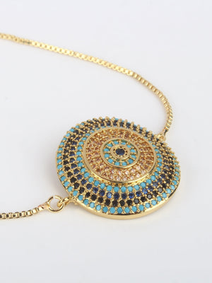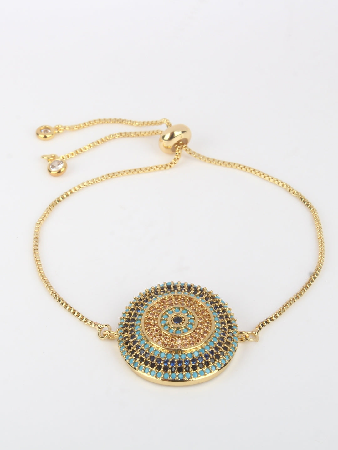 Gold-Plated Gold & Blue Cubic Zirconia Studded Brass Charm Bracelet