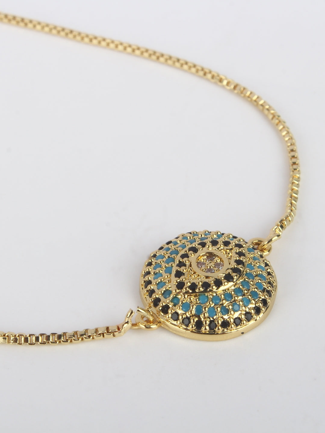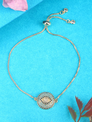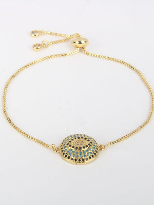 Gold-Plated Gold & Blue Cubic Zirconia Studded Brass Charm Bracelet