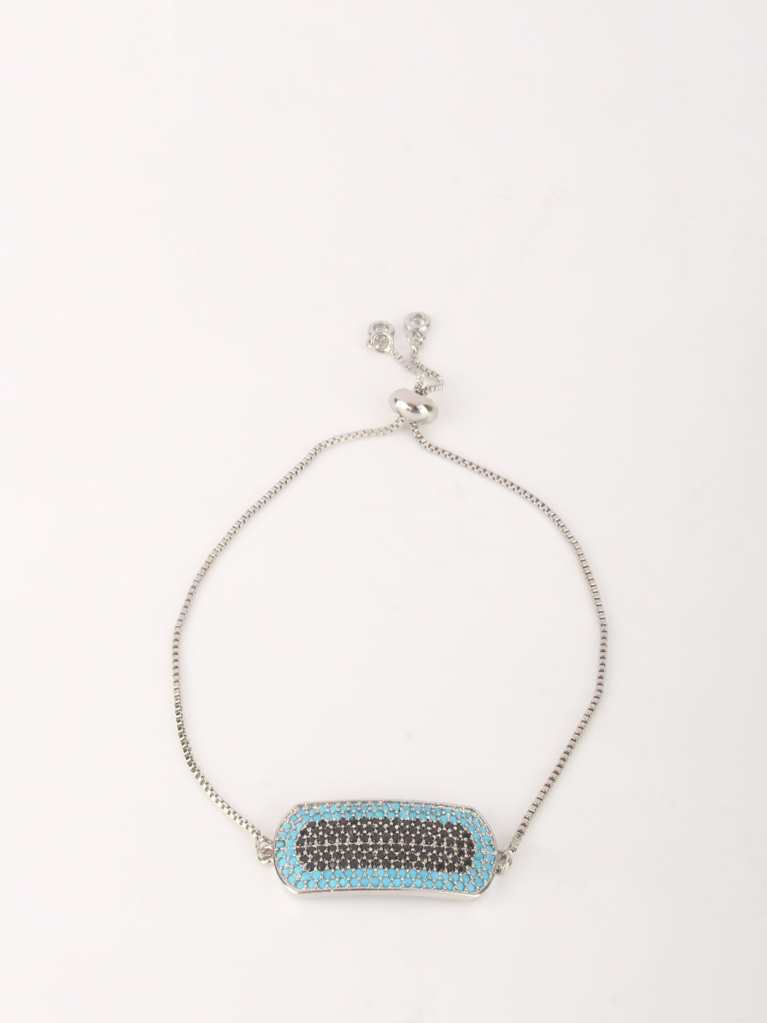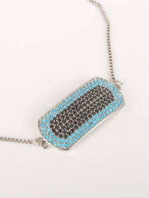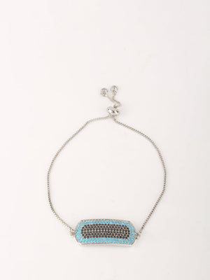 Gold-Plated Gold & Blue Cubic Zirconia Studded Brass Charm Bracelet