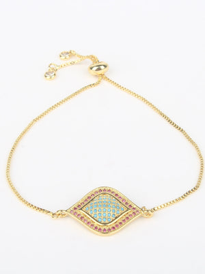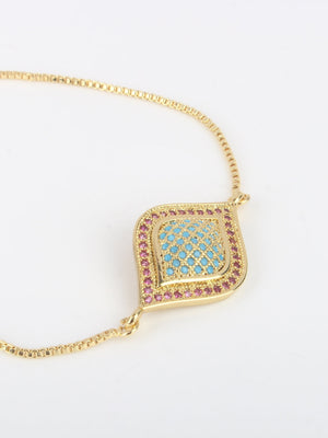Gold-Plated Gold & Blue Cubic Zirconia Studded Brass Charm Bracelet