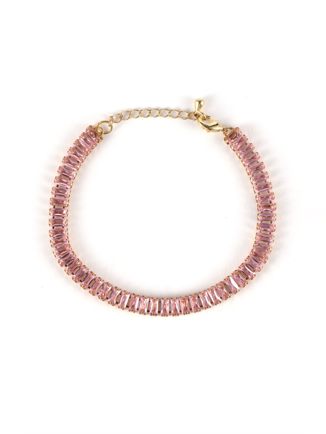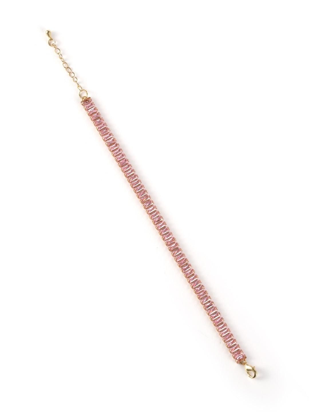 Gold-Plated Gold & Transparent Rhinestone Studded Handcrafted Brass Bracelet
