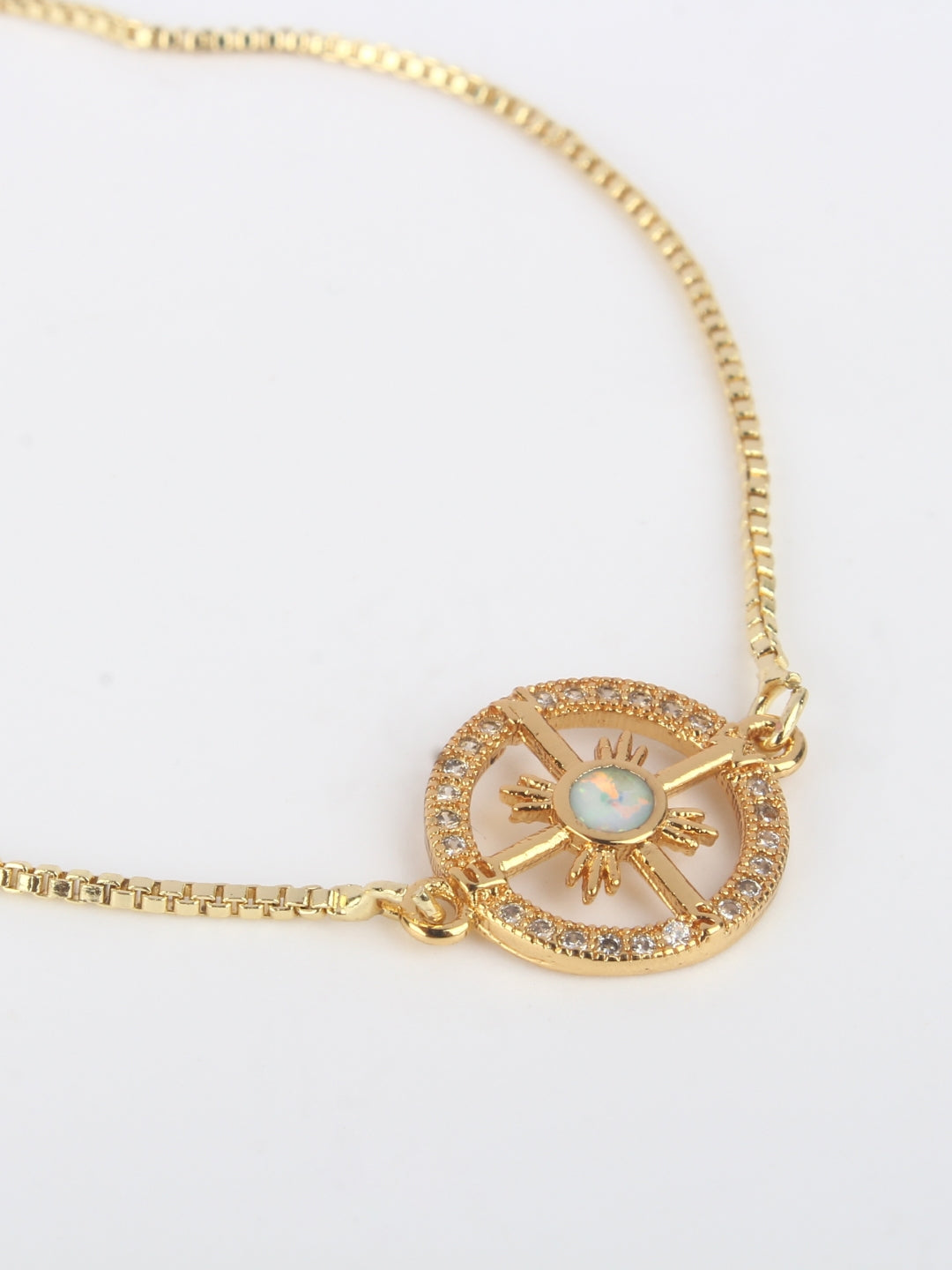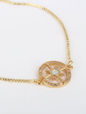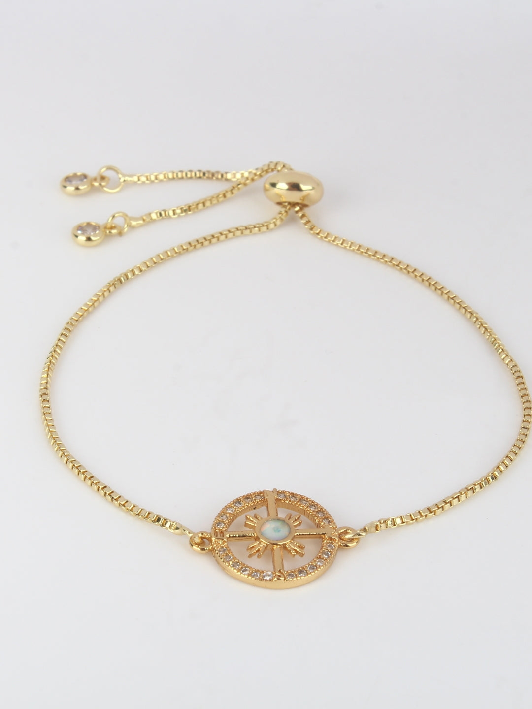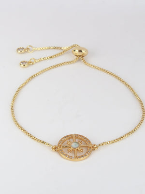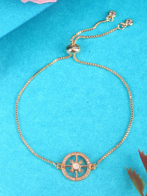 Gold-Plated Gold & Transparent Cubic Zirconia Studded Brass Charm Bracelet