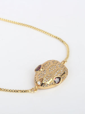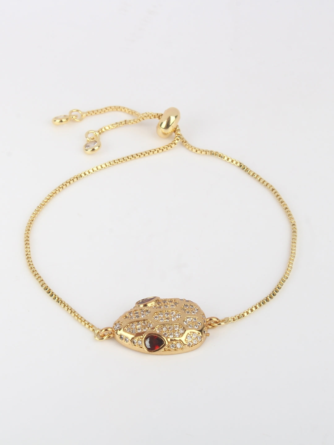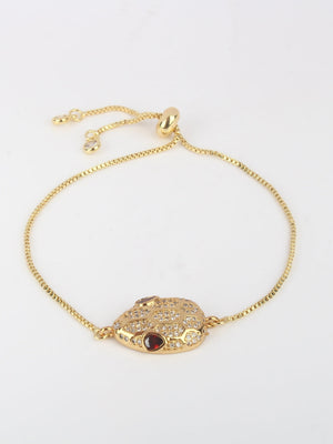 Gold-Plated Gold & Transparent Cubic Zirconia Studded Brass Charm Bracelet