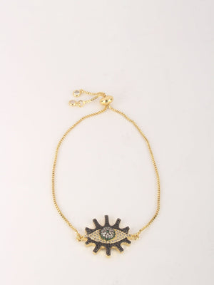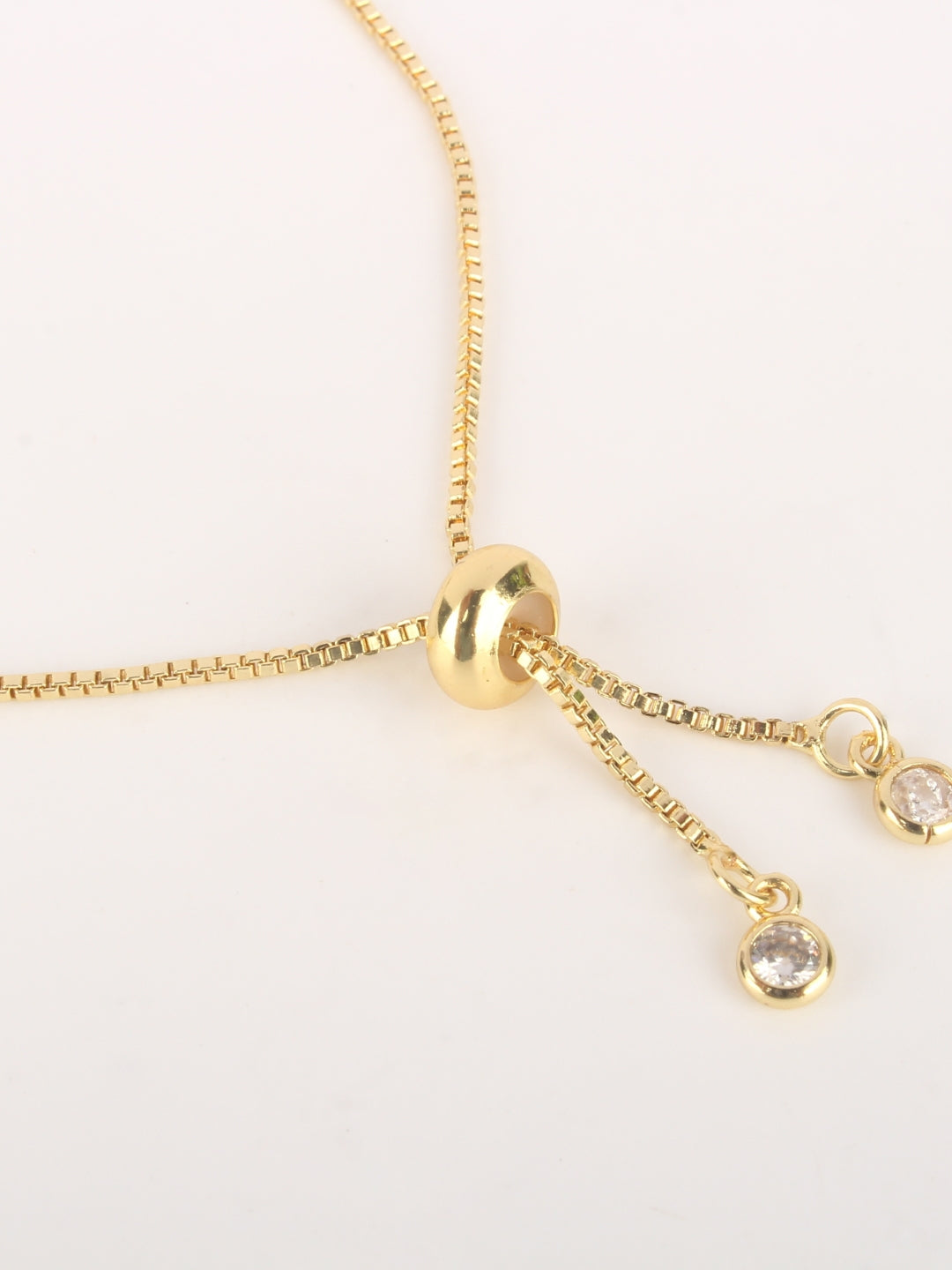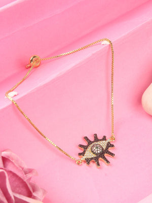 Gold-Plated Gold & Transparent Cubic Zirconia Studded Brass Charm Bracelet