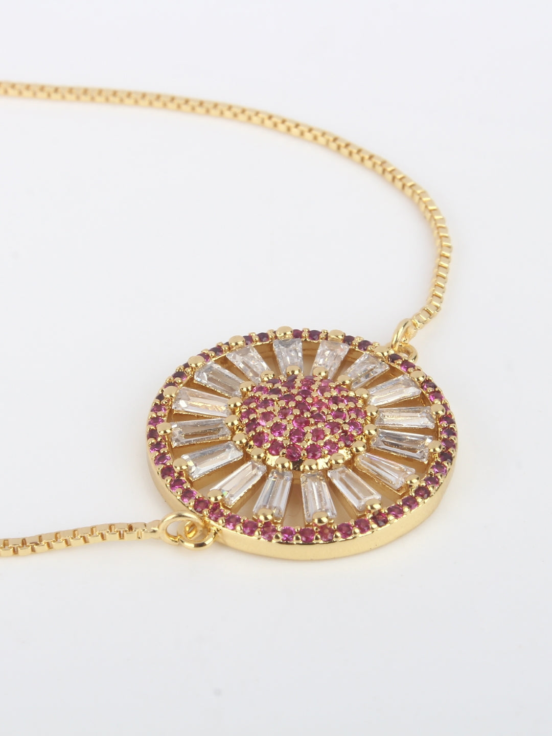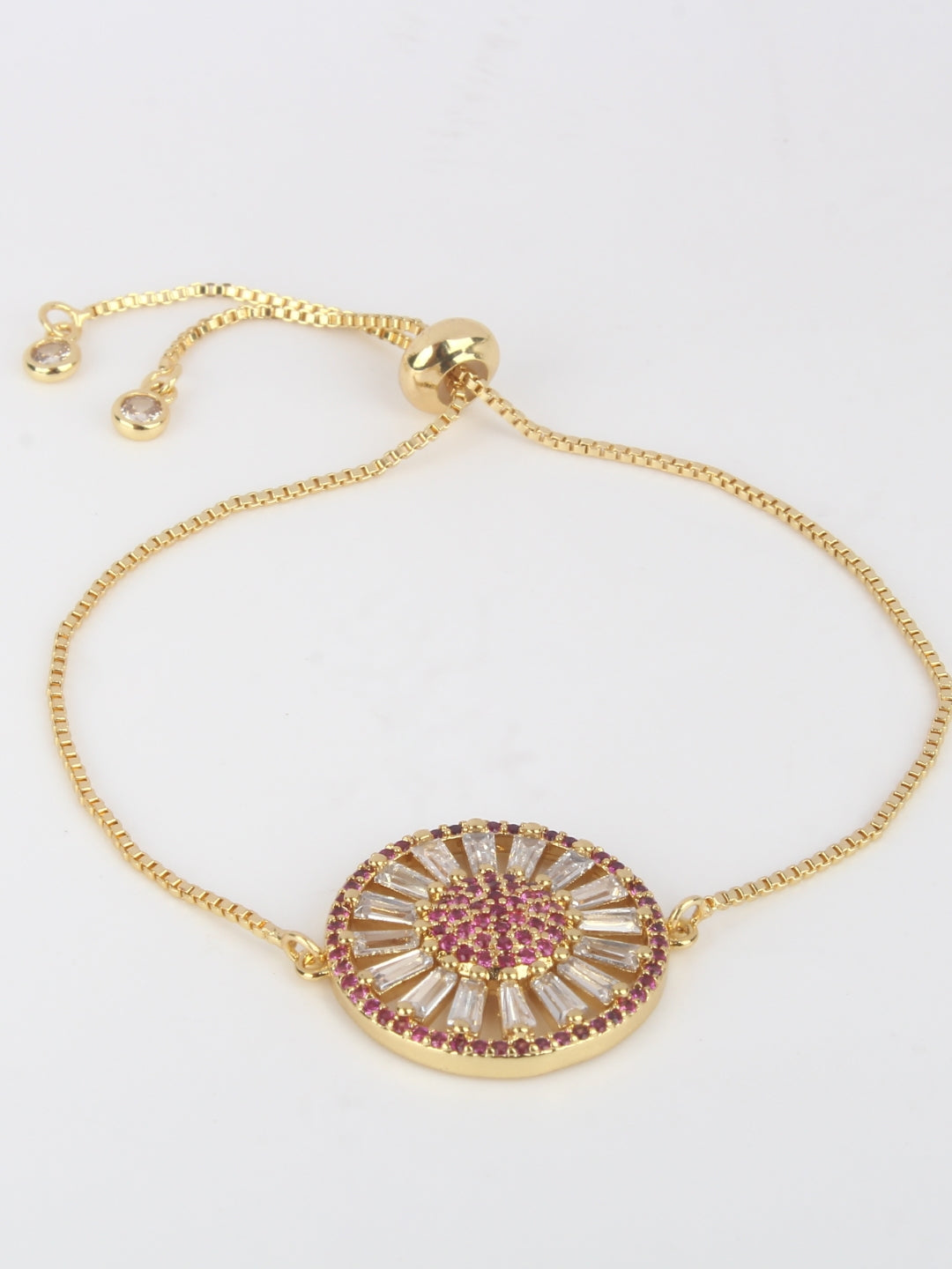 Gold-Plated Gold & Transparent Cubic Zirconia Studded Brass Charm Bracelet