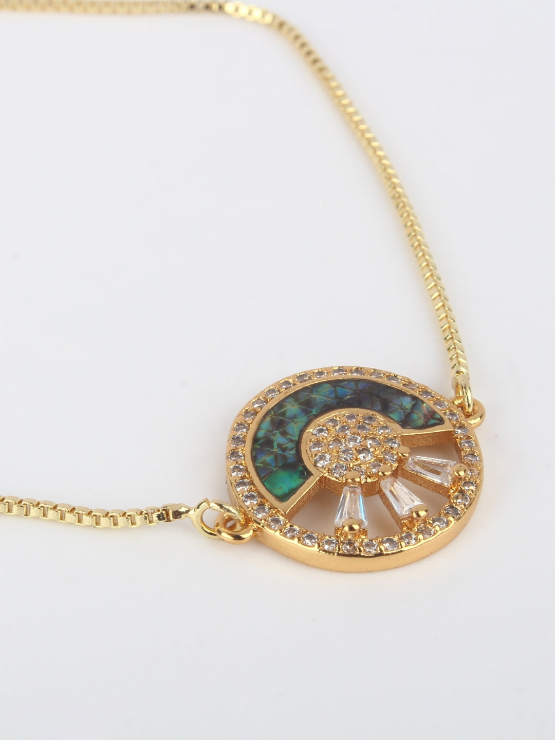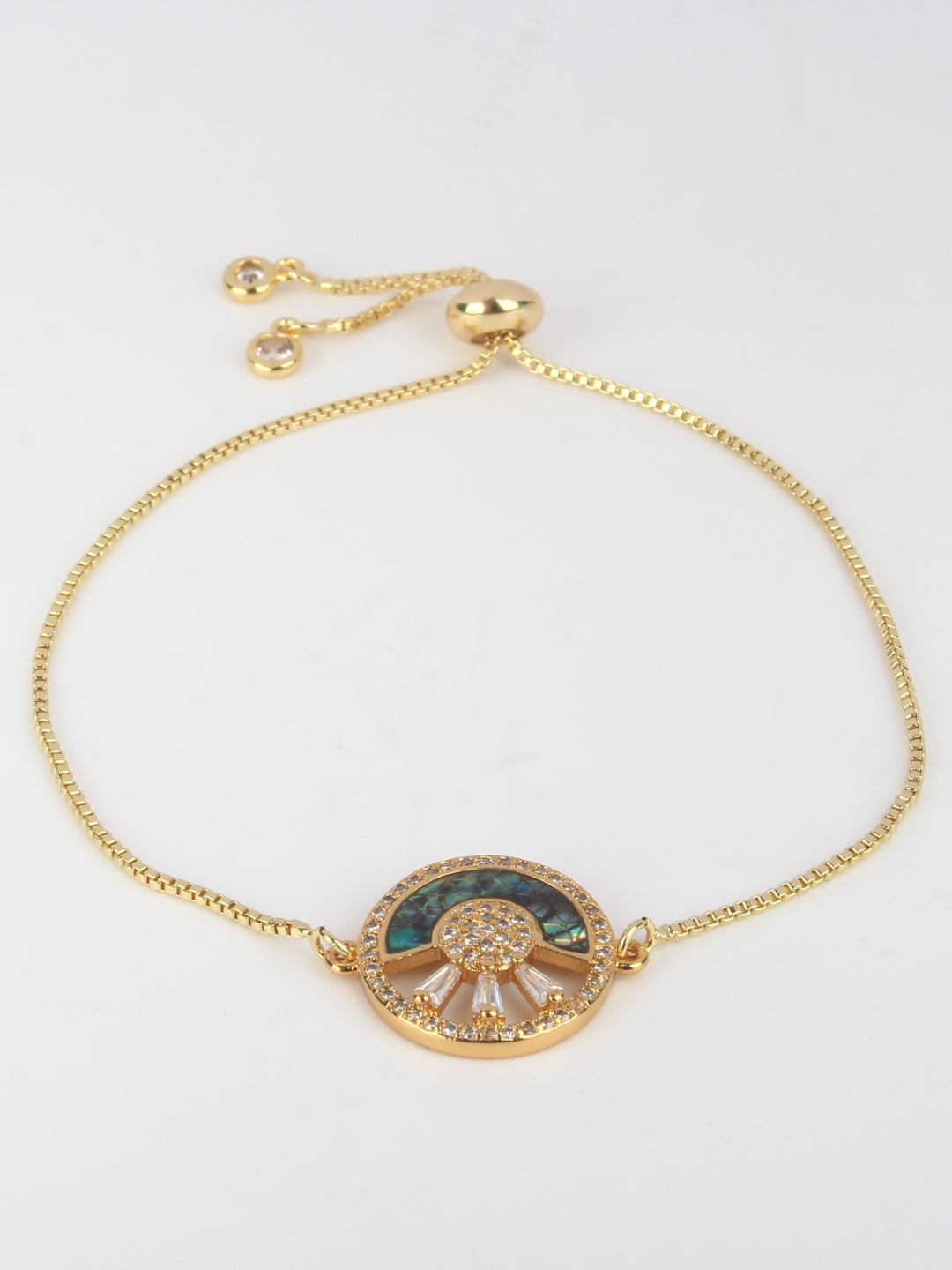 Gold-Plated Gold & Transparent Cubic Zirconia Studded Brass Charm Bracelet