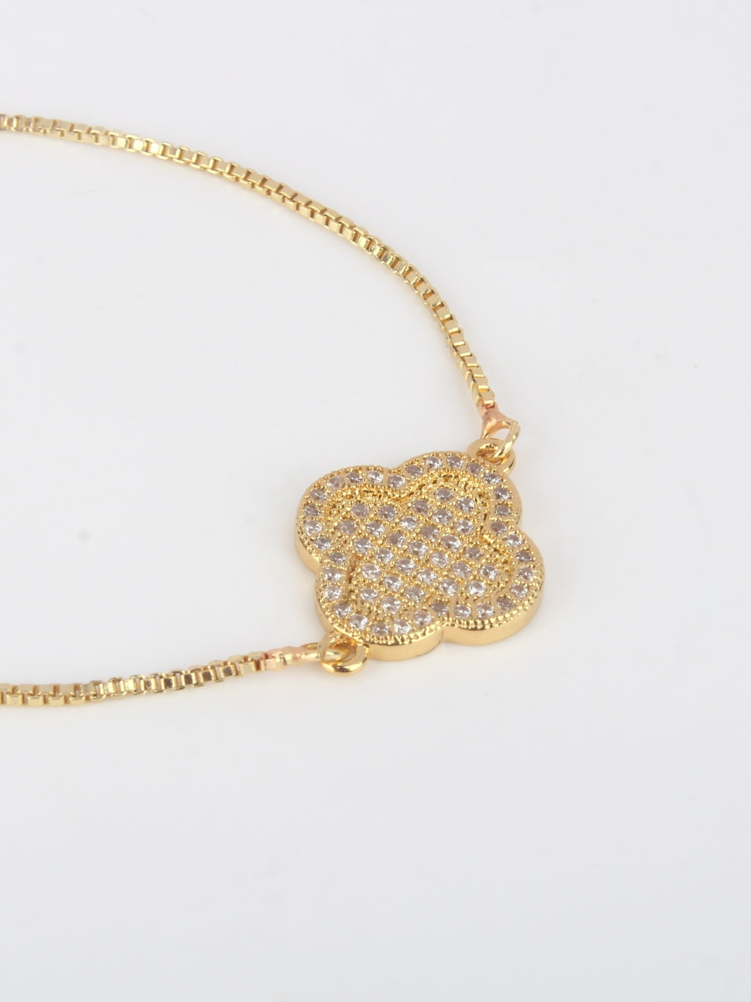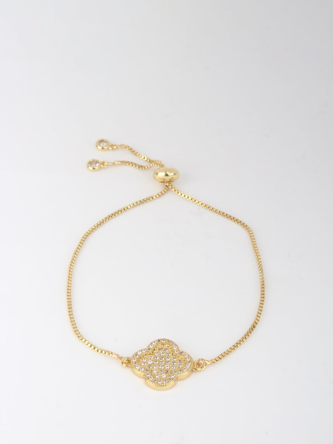 Gold-Plated Gold & Transparent Cubic Zirconia Studded Brass Charm Bracelet