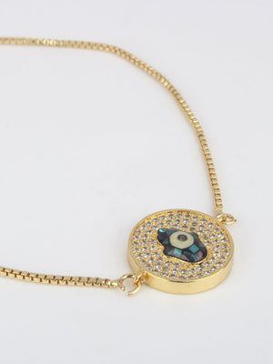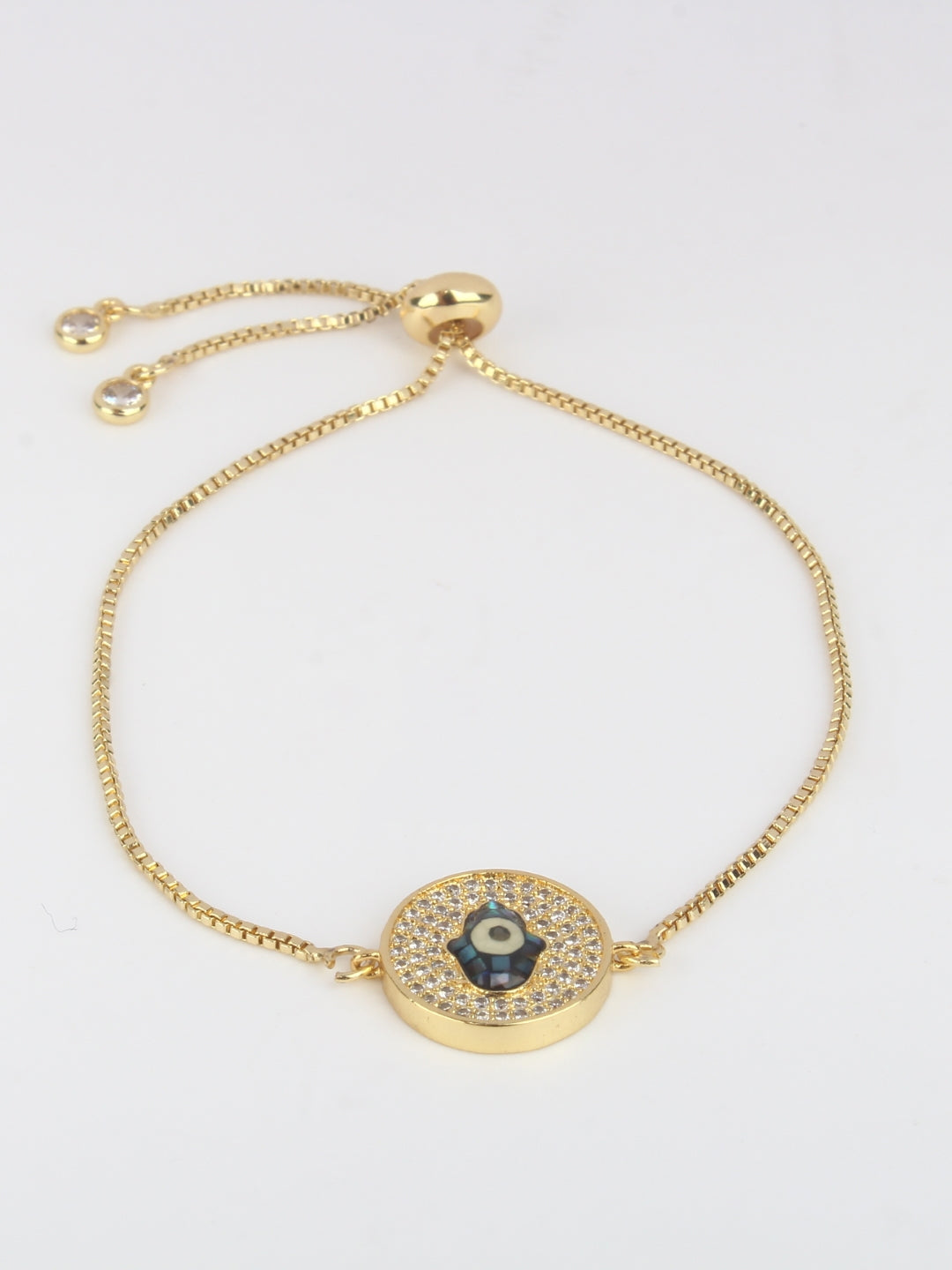 Gold-Plated Gold & Transparent Cubic Zirconia Studded Brass Charm Bracelet