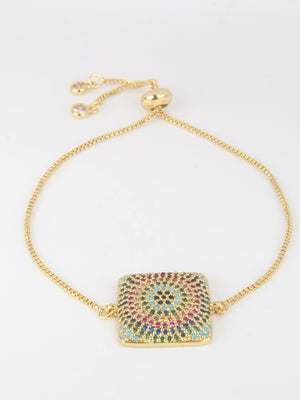 Gold-Plated Gold & Transparent Cubic Zirconia Studded Brass Charm Bracelet