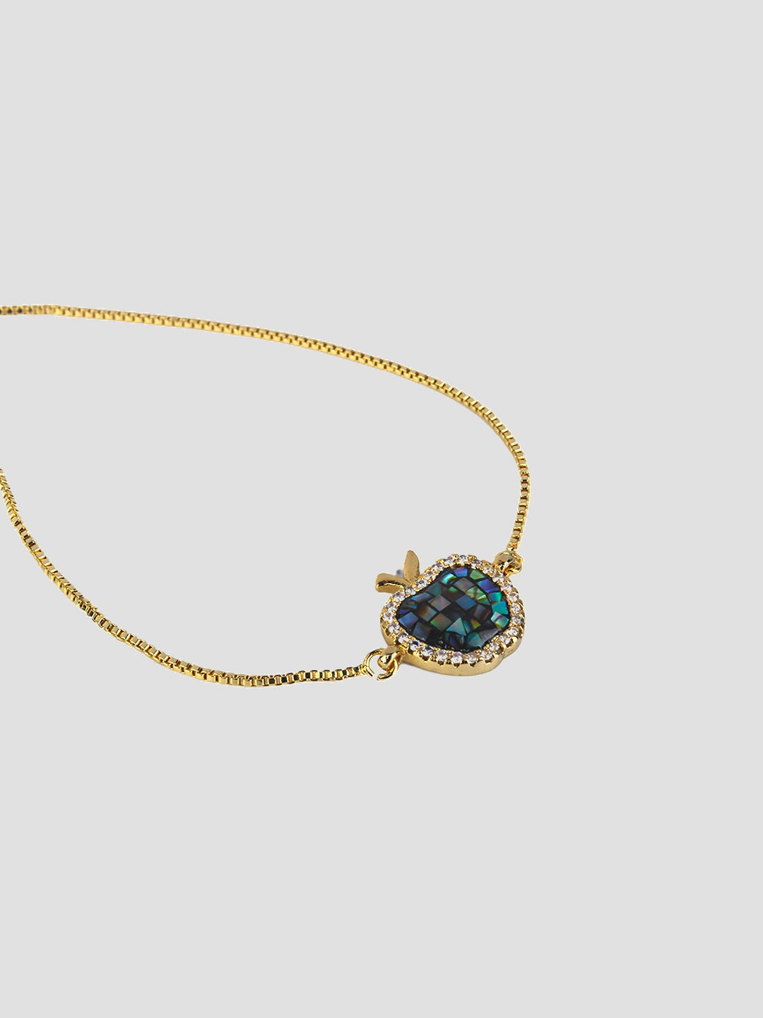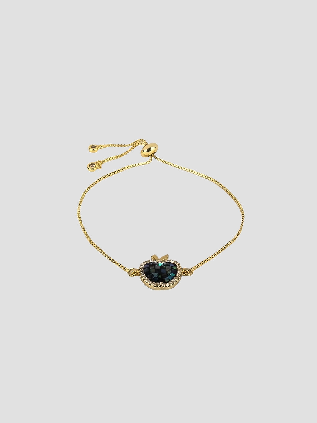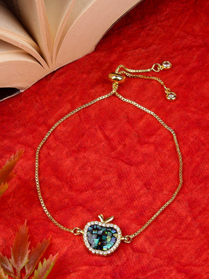 Gold-Plated Transparent & Black Apple Shaped CZ Studded Bracelet