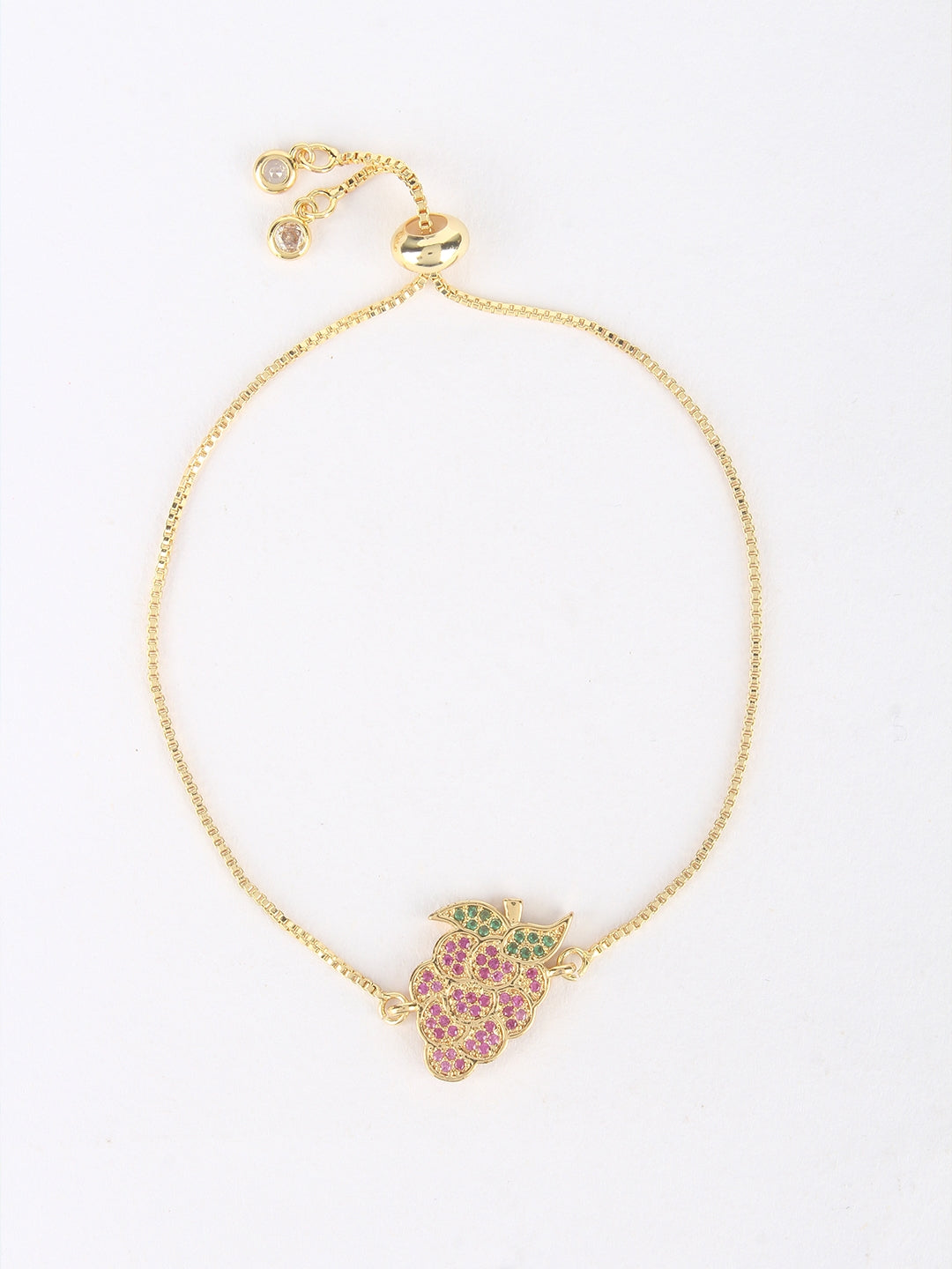 Gold & Green Brass Cubic Zirconia Gold-Plated Handcrafted Charm Bracelet