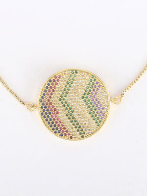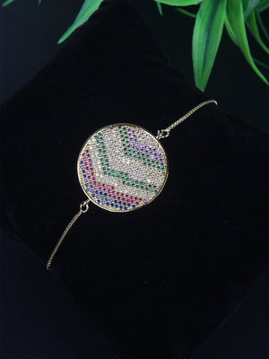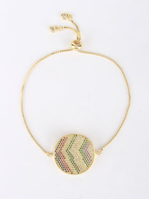 Gold & Multi Brass Cubic Zirconia Gold-Plated Handcrafted Charm Bracelet