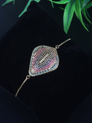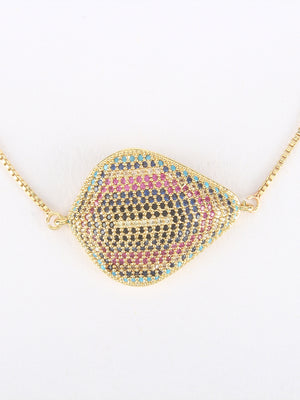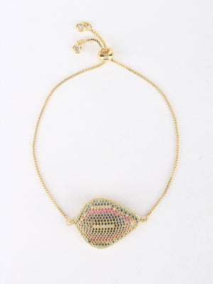 Gold & Multi Brass Cubic Zirconia Gold-Plated Handcrafted Charm Bracelet