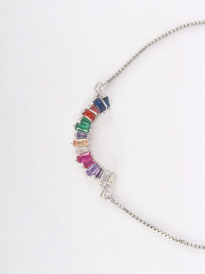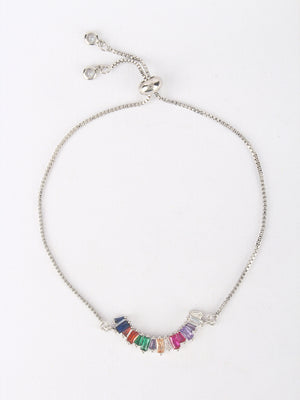 Gold & Multi Brass Cubic Zirconia Gold-Plated Handcrafted Charm Bracelet