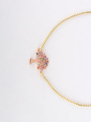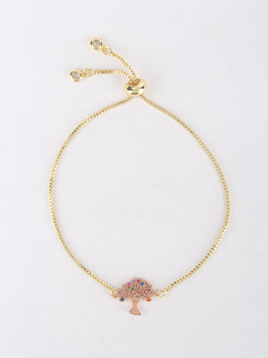 Gold & Multi Brass Cubic Zirconia Gold-Plated Handcrafted Charm Bracelet