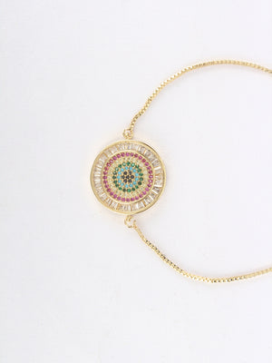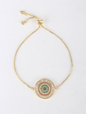 Gold & Multi Brass Cubic Zirconia Gold-Plated Handcrafted Charm Bracelet