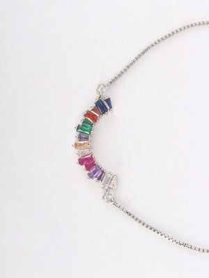Gold & Multi Brass Cubic Zirconia Gold-Plated Handcrafted Charm Bracelet