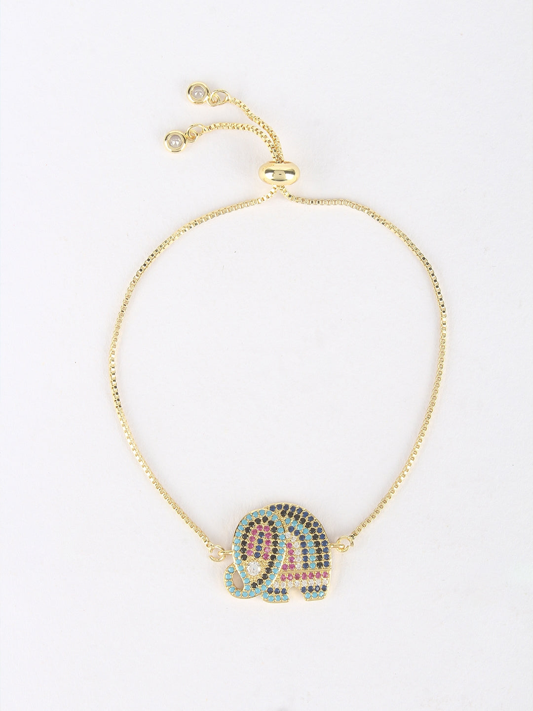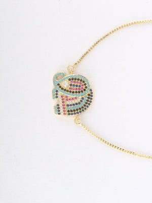 Gold & Multi Brass Cubic Zirconia Gold-Plated Handcrafted Charm Bracelet