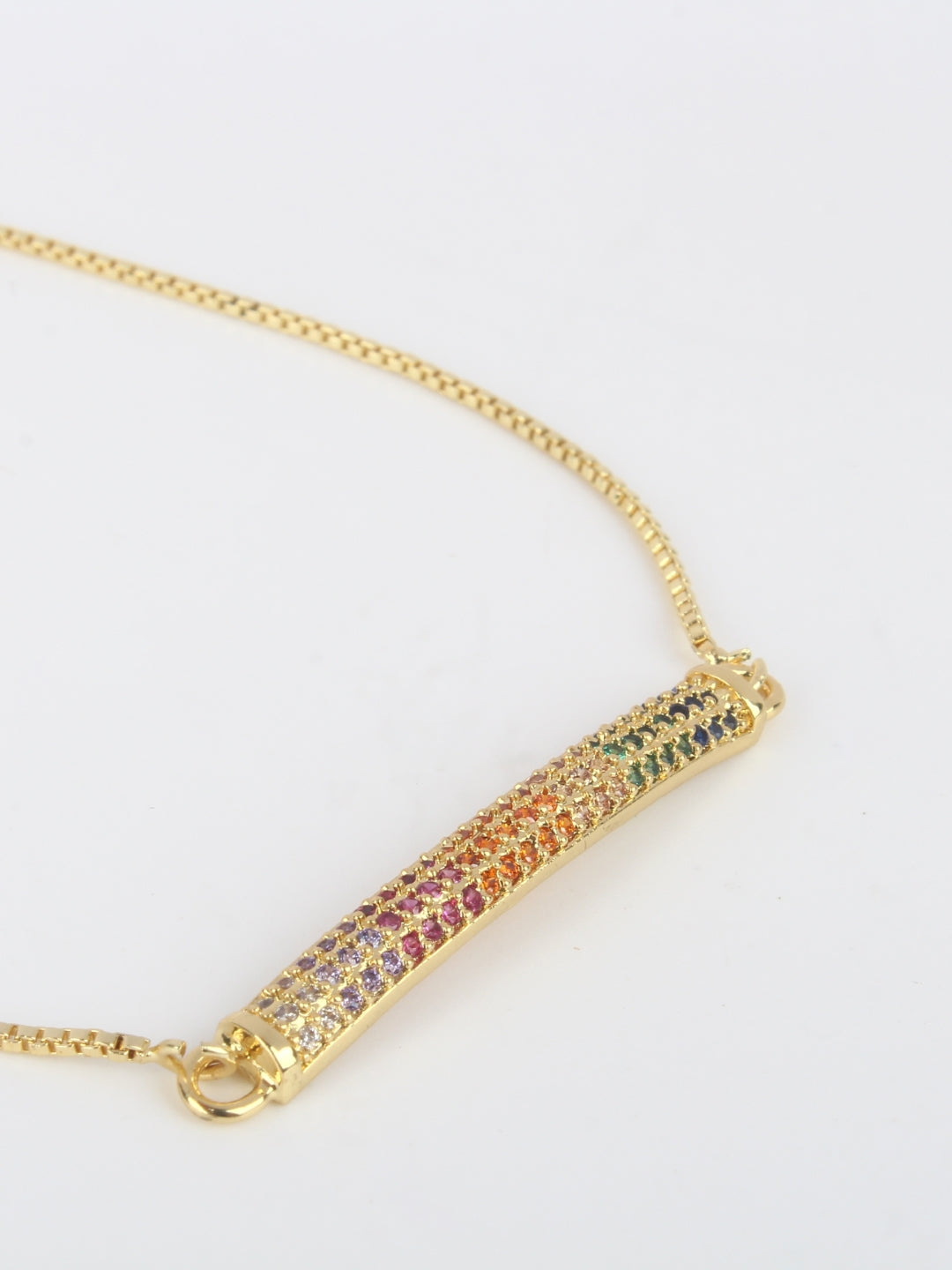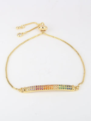 Gold-Plated Gold & Multi Cubic Zirconia Studded Brass Charm Bracelet