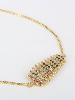 Gold-Plated Gold & Multi Cubic Zirconia Studded Brass Charm Bracelet