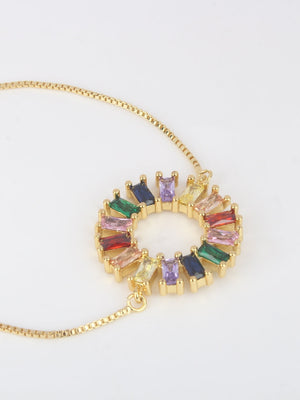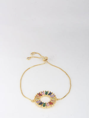 Gold-Plated Gold & Multi Cubic Zirconia Studded Brass Charm Bracelet