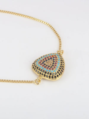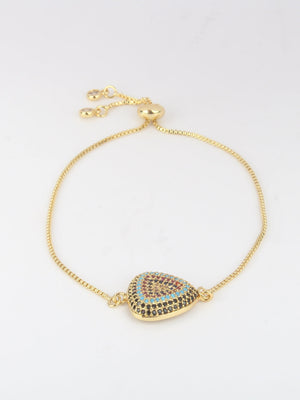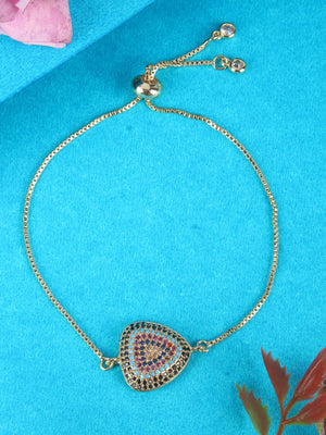 Gold-Plated Gold & Multi Cubic Zirconia Studded Brass Charm Bracelet