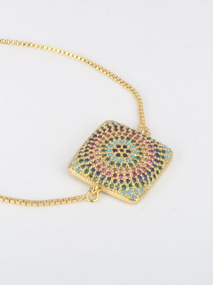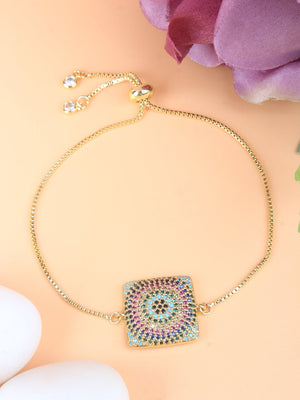 Gold-Plated Gold & Multi Cubic Zirconia Studded Brass Charm Bracelet