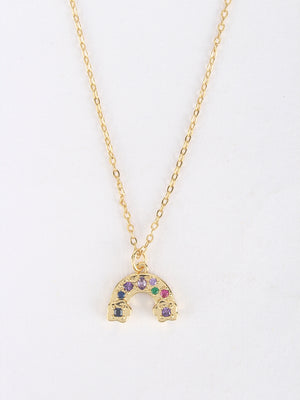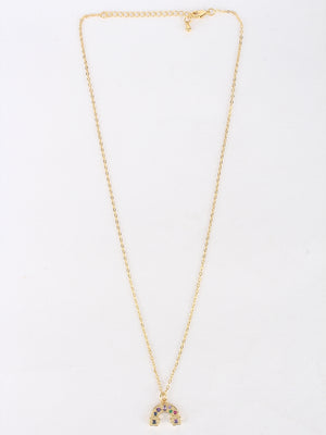 Gold & Multi Brass Cubic Zirconia Minimal Gold-Plated Handcrafted Necklace