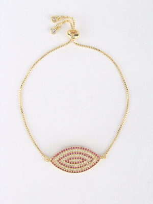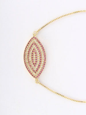 Gold & Purple Brass Cubic Zirconia Gold-Plated Handcrafted Charm Bracelet