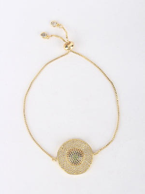 Gold & Navy Blue Brass Cubic Zirconia Gold-Plated Handcrafted Charm Bracelet