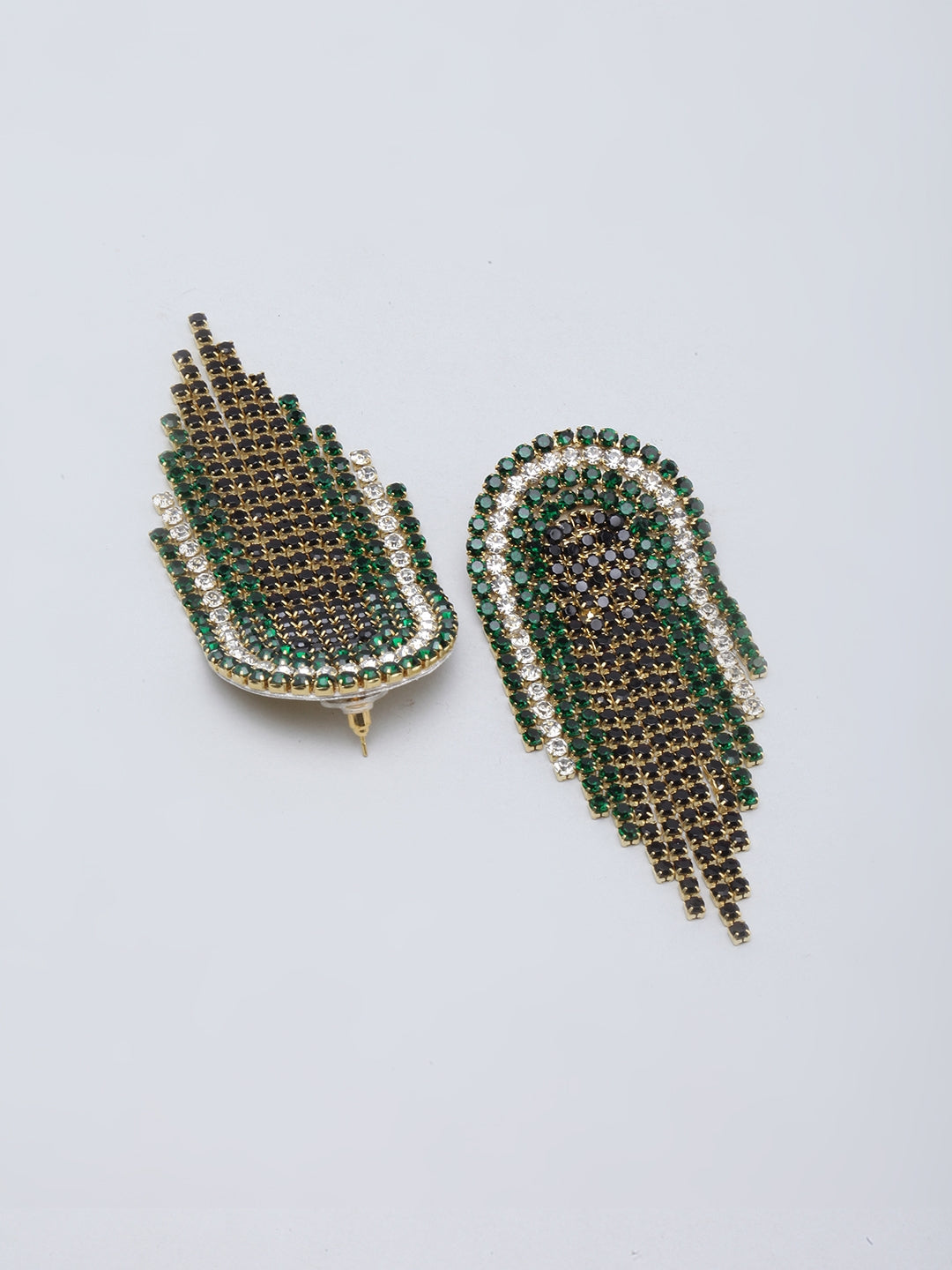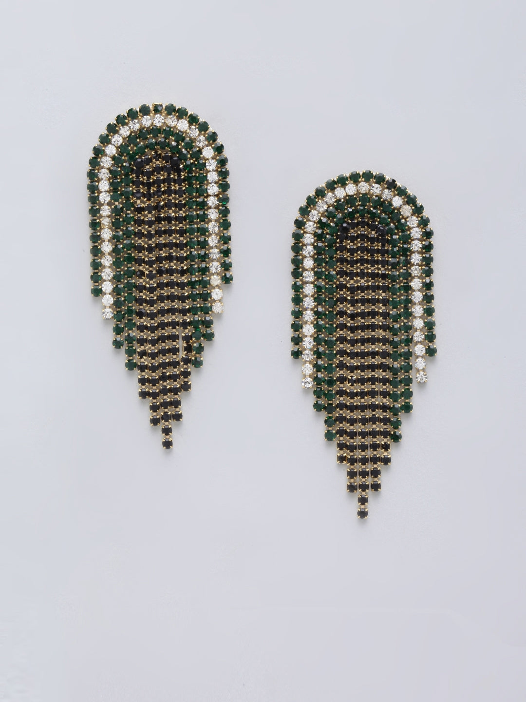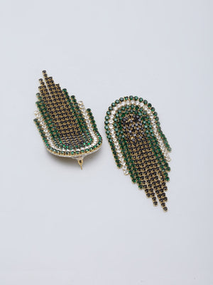 Gold-Plated Black & Green Rhinestone Studded Drop Earrings