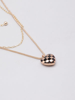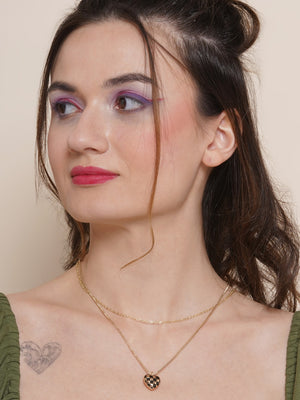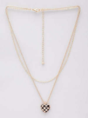 Gold-Plated Black Heart Shaped Multi-Layered Minimal Necklace