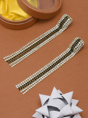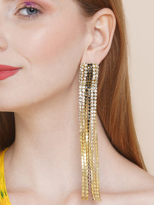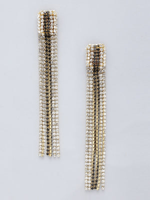 Gold-Plated Black & Transparent Rhinestone Metallic Chain Tassels
